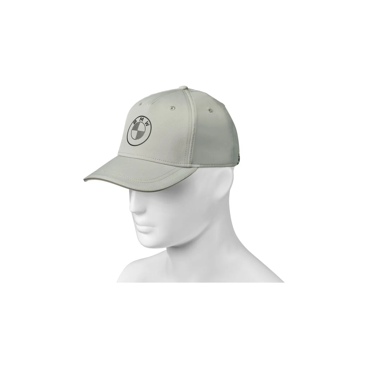 Casquette grise avec logo BMW imprimé en grand à l’avant.