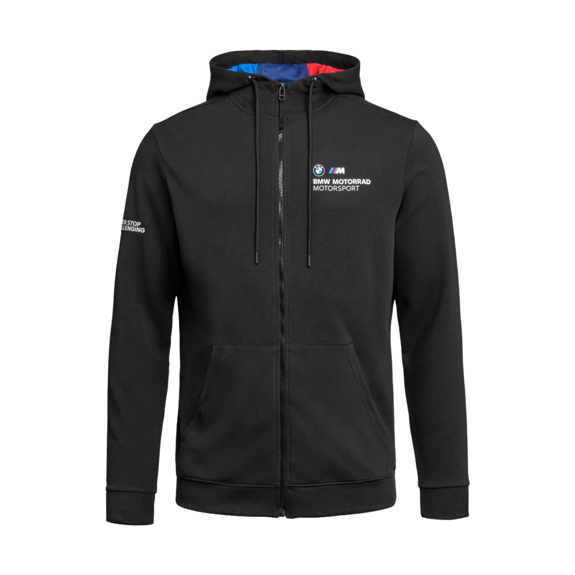 Sweat à capuche zippé BMW Motorsport 2026 Homme : affichez votre passion pour la compétition avec ce sweat zippé technique et confortable. Réalisé dans un mélange premium de coton et d’élasthanne pour une liberté de mouvement optimale, il se distingue par son grand graphisme au dos et le slogan « Never Stop Challenging » sur la manche, incarnant l’esprit sportif de BMW Motorrad.